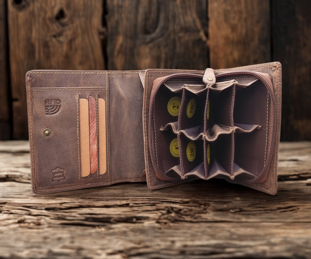 🍀 « ULTRA PRATIQUE » Voici le modèle Stone de la collection vintage Frederic Johns. 8 compartiments pour ranger toutes vos cartes de paiement, crédit, sécurité sociale ou fidélité, 1 porte monnaie avec bouton à pression (grande ouverture) et 2 grands compartiments à l'arrière pour les billets ou reçus. Rangez aussi votre permis de conduire ou carte d'identité.