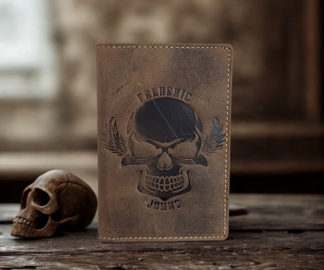 Porte Papier Voiture Cuir Modèle 4 Volets (tête de Mort)